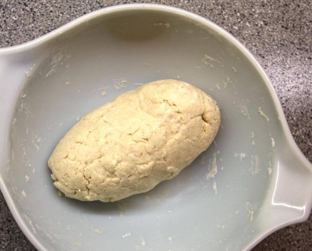 Pour the sour cream mixture into the flour mixture and mix until the dough forms shaggy clumps. Turn out onto a lightly floured countertop and knead briefly until the dough has just come together. Cover and rest in the fridge for 30 minutes.