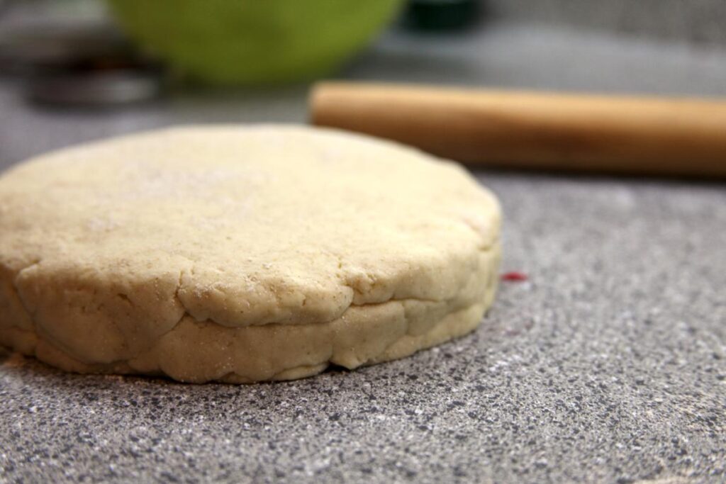 Once the dough is rested, remove from the fridge and turn out onto a lightly floured countertop. Tapioca starch or white rice flour both work well for preventing sticking.