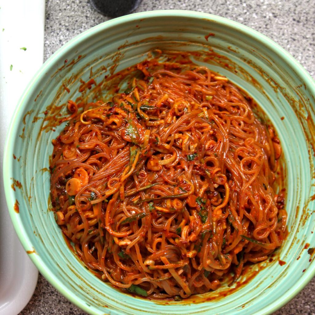 A mandoline isn’t necessary but is very helpful in slicing the cucumber into matchsticks efficiently.