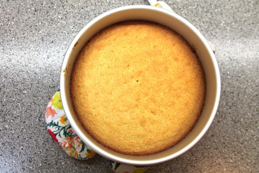 Wait to remove the cake from the pan until it is entirely cool. Slide a knife around the edge to release the cake, then lay a piece of seran wrap over the top and flip the cake pan over. Peel the parchment paper off the bottom of the cake, then place on a serving plate. Enjoy!